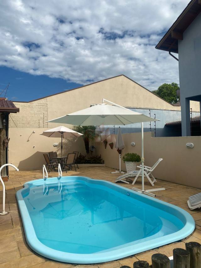 Casa plana em local próximo a Av. Brasil, com 03 dormitórios, sendo 01 suíte, banheiro social, sala de estar, sala de jantar com espaço gourmet integrada, cozinha com moveis sob-medida, lavanderia fechada, quiosque em estilo campeiro, pátio nos fundos com piscina, pátio frontal com jardinagem e fechamento com grades.
