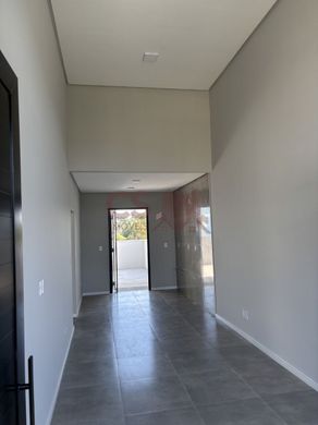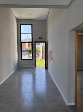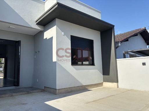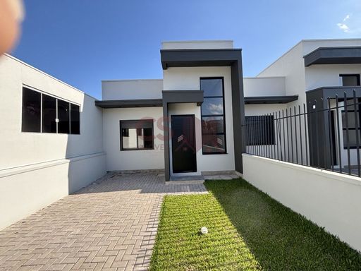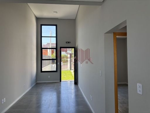Bela casa geminada com 02 dormitórios, banheiro social, sala de estar com pé direito duplo, cozinha, espaço p/ lavanderia, e aquecedor de passagem, pátio nos fundos, vaga de garagem para 01 carro, o imóvel possui pisos de porcelanato, forro em gesso, aberturas em aluminio, pátio frontal todo fechado.